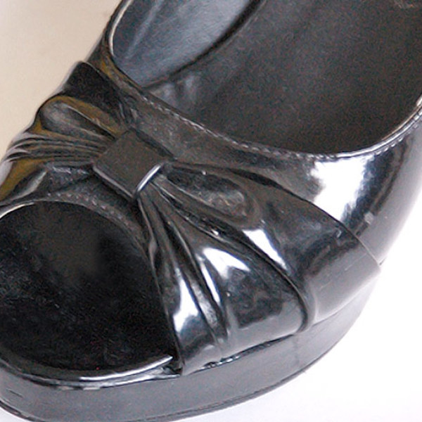 Black platform heels. Gold buckle/metal detail. Size says, “7.5” - but that’s a flat out lie - they fit like an 8.5. ~3 inch heel... average soda can included in photos for size comparison. They’re super comfy!