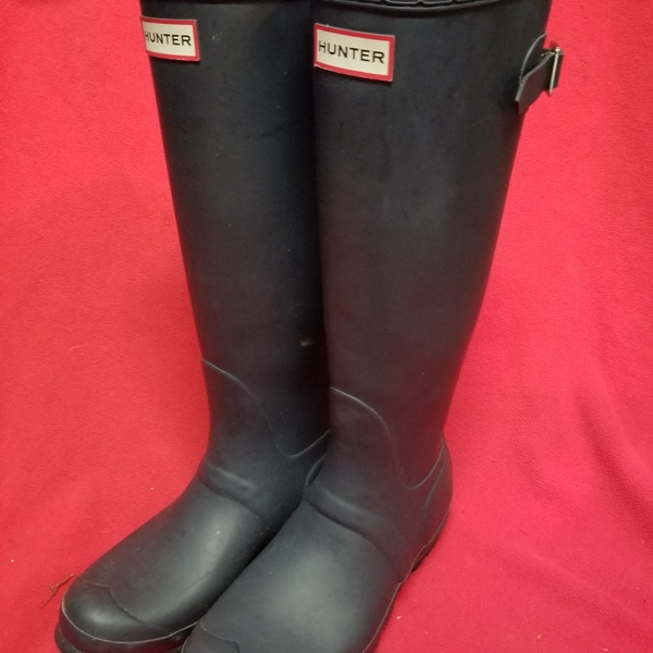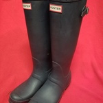 Hunter rain boots. Worn literally once! Size 7. Paid over $150. Only selling because they were a little tight on my step daughters feet. Color:navy. Adjustable back. Still have box they came in.