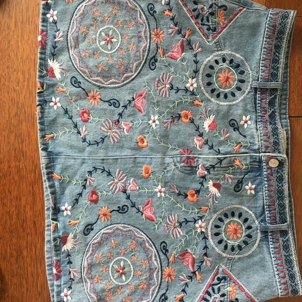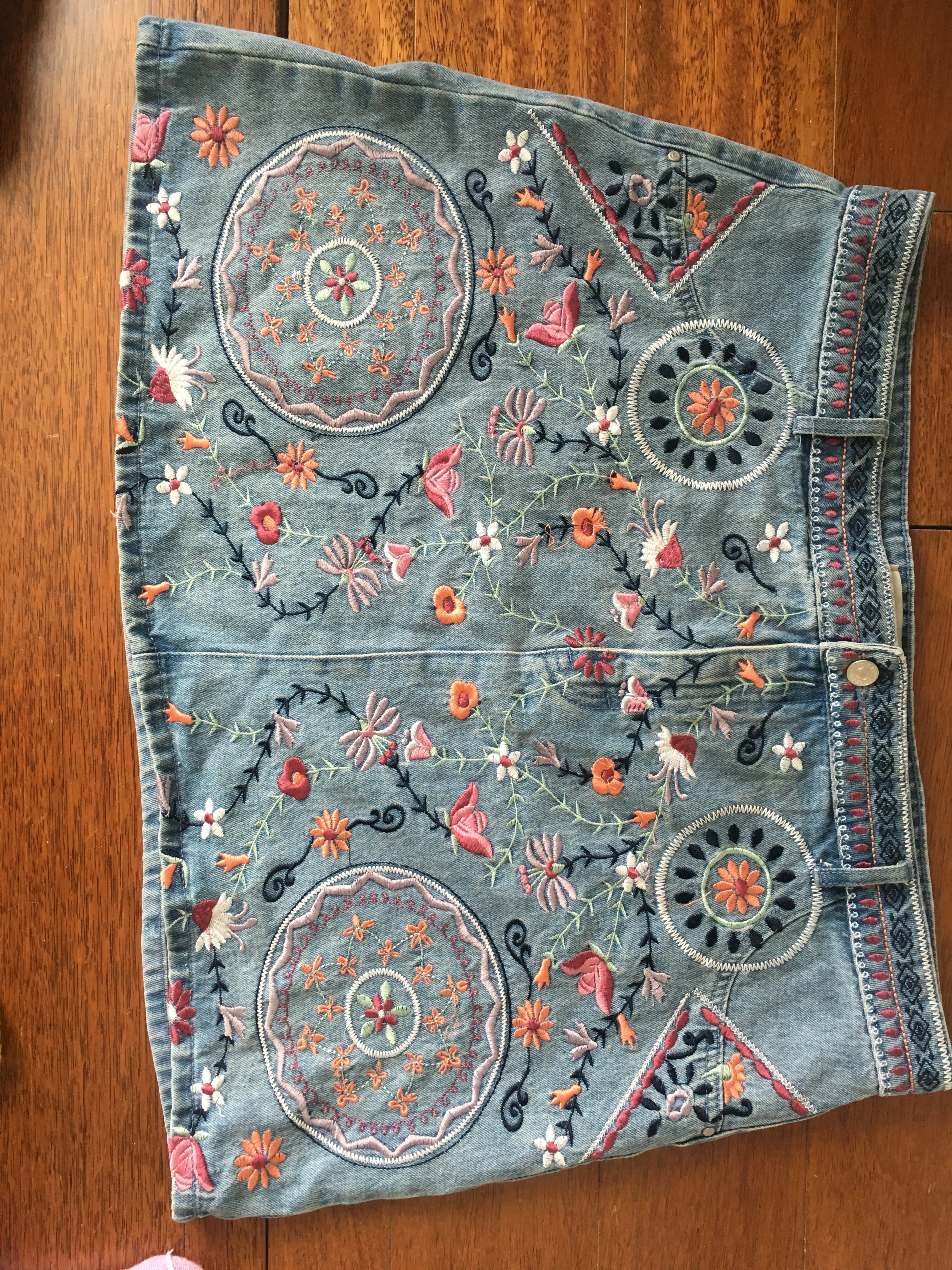 Embroidered floral pattern on size 20 (primark) denim skirt