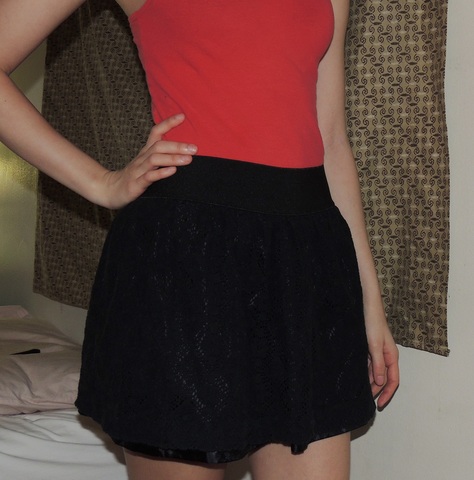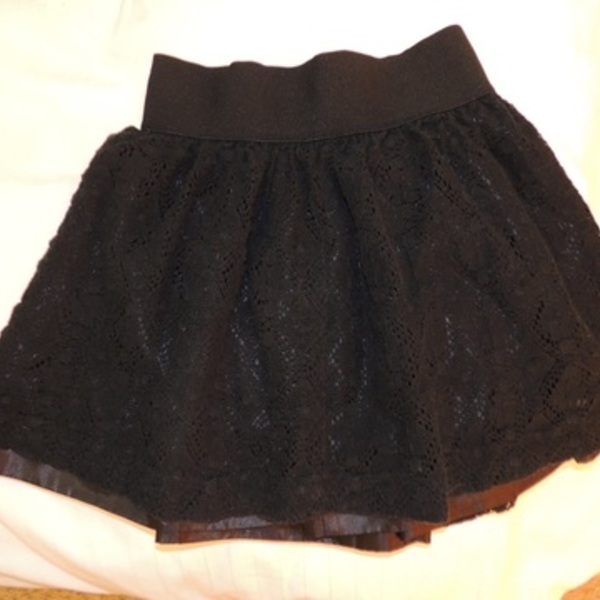 Forever 21 black skirt. Extra small, but could fit a regular small. Stretchy band.