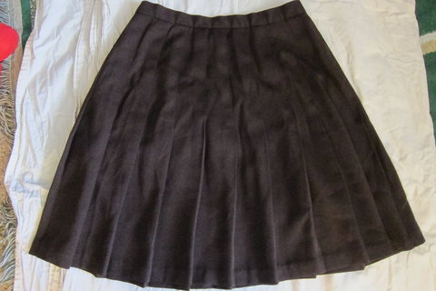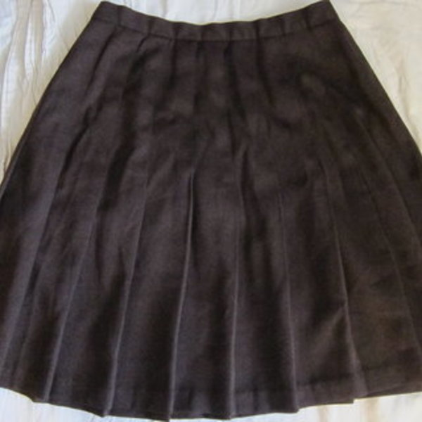 Super cute knee-length brown pleated, schoolgirl-style skirt. Size says 12. Fits like S/M.