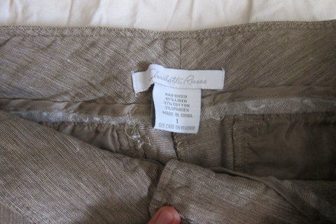 These slacks are in excellent condition EXCEPT there is an ink stain at the bottom of a back pocket, ugh. I wear my shirts tucked in so this won't work for me. If you wear long shirts on the outside these pants are for you. Well-made, great quality, comfortable.