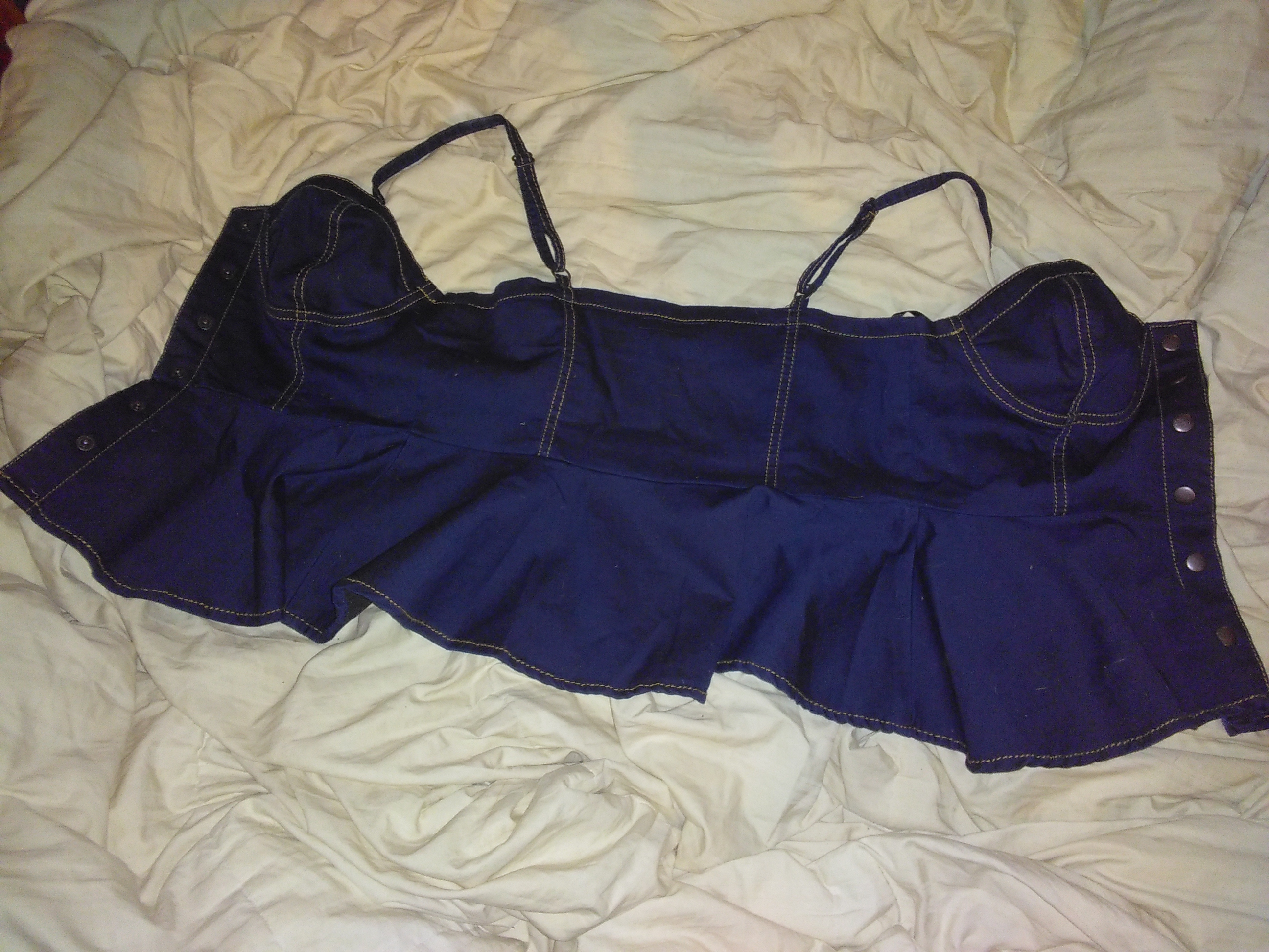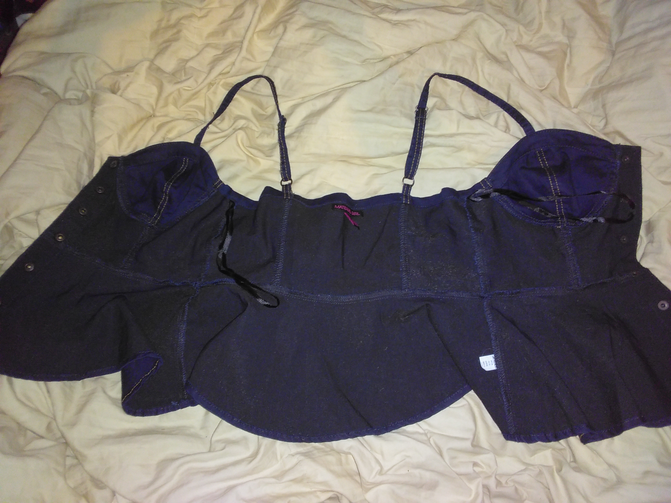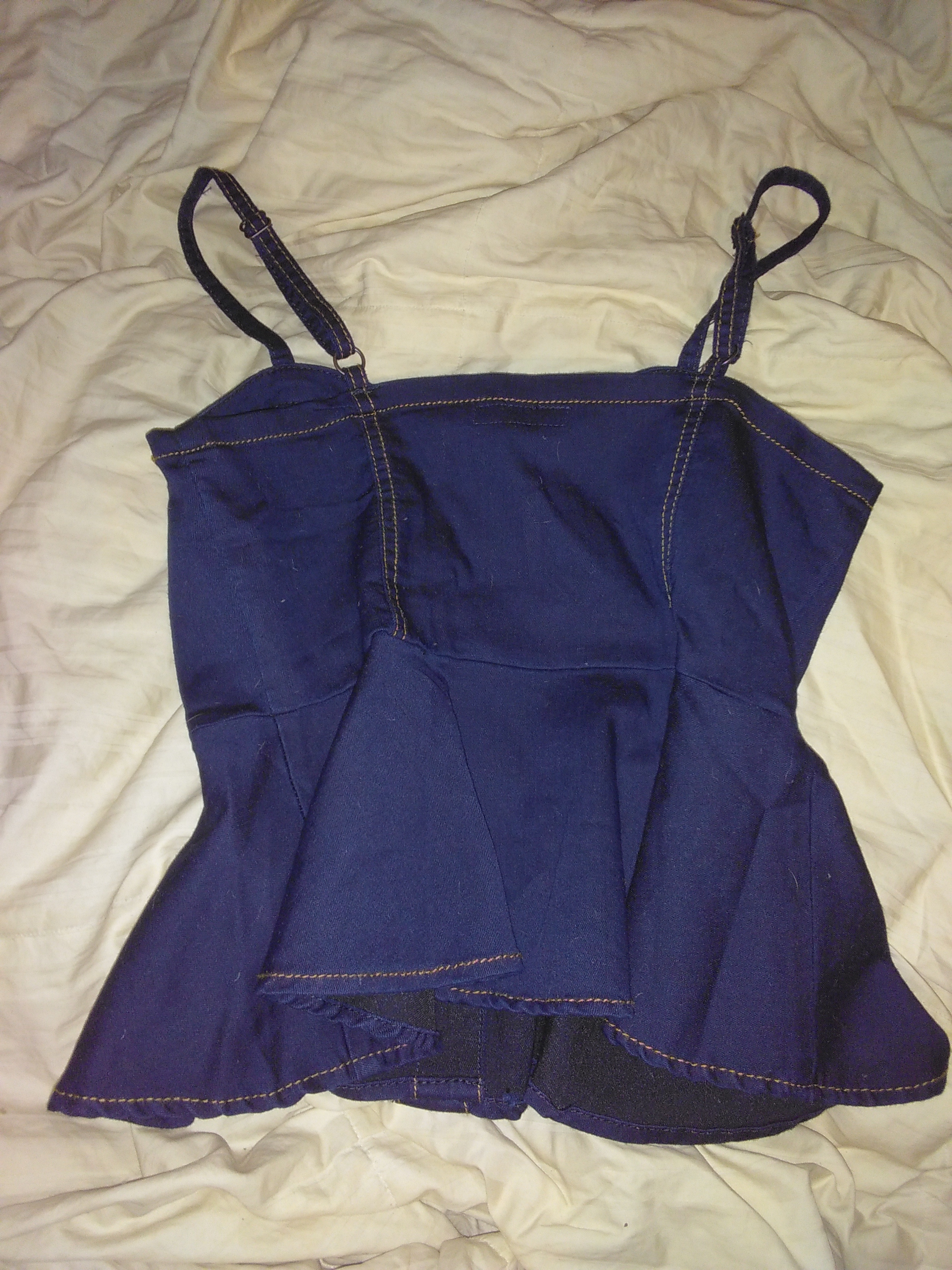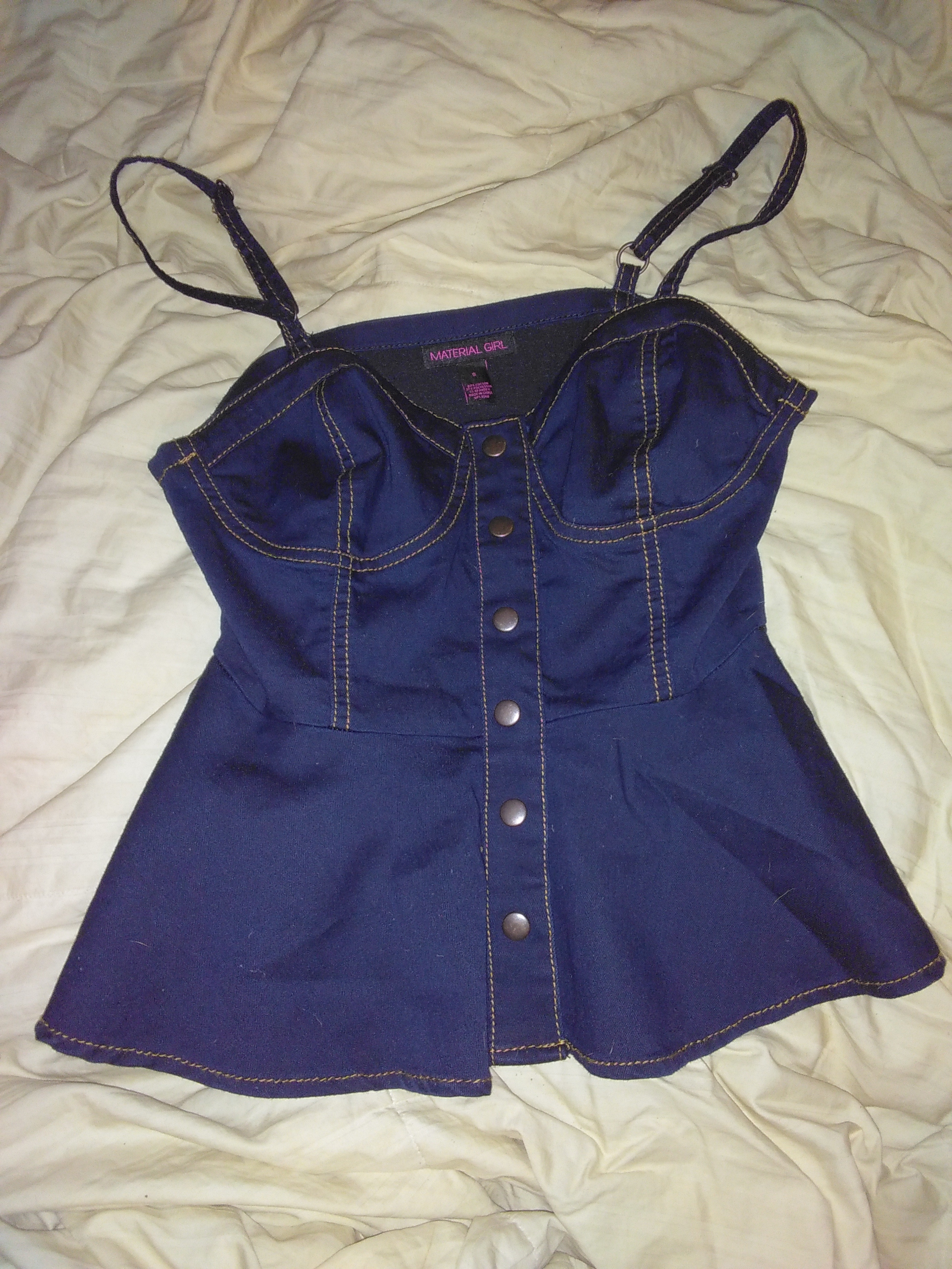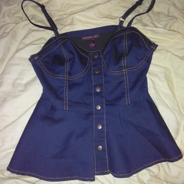 Cute denim-style crop top cami with button up front, brand new from Macy's! Size small.