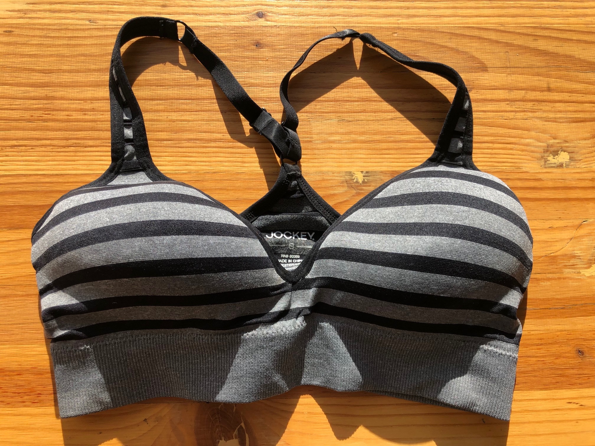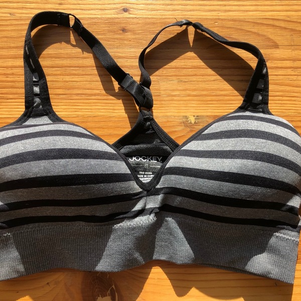 Grey and black striped Jockey sports bra size small. Great shape.