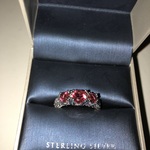 I was given this as a gift from a friend. Sadly ithe doesn't fit me ): It's a size 8 and never been worn. Comes in original packaging. The ring itself is sterling silver. Stones aren't real but look close too!(:
