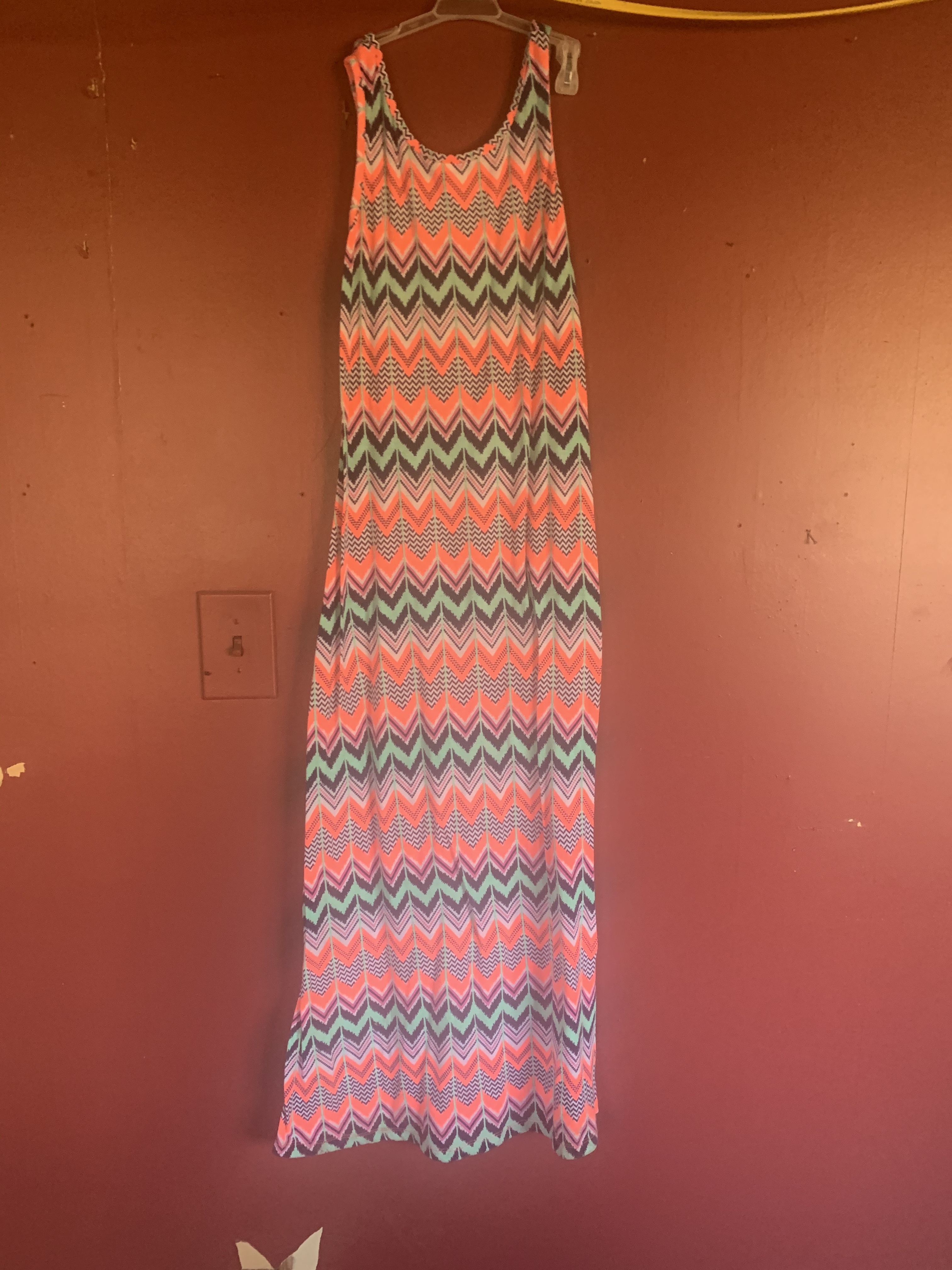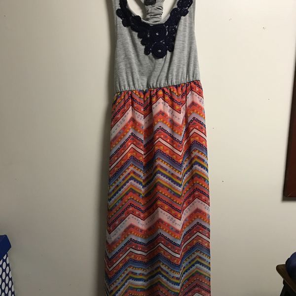 Light and flowy maxi dress with buttons all the way up the front. Brand is UNO (like the game...? Idk). Has attached waist string for cinching the waist. Size is medium but definitely closer to a small. Put condition as good because the button strings are poking out but you can probably just snip those