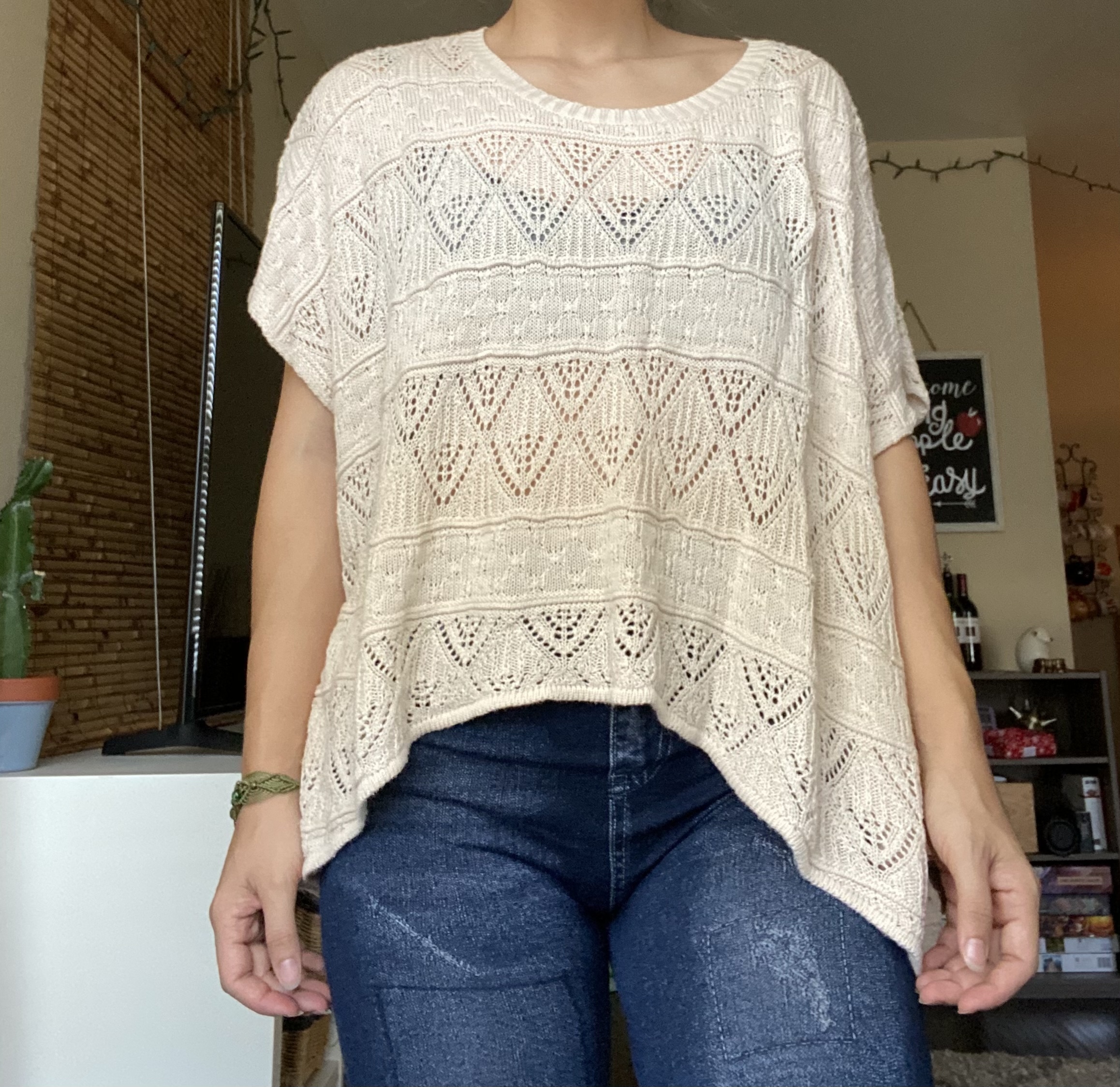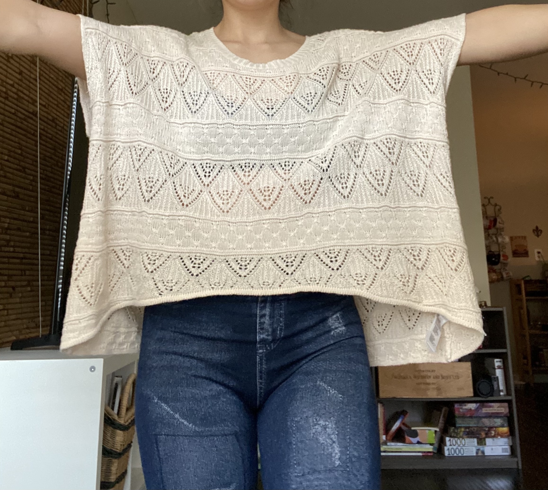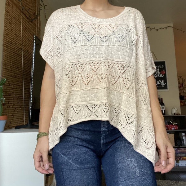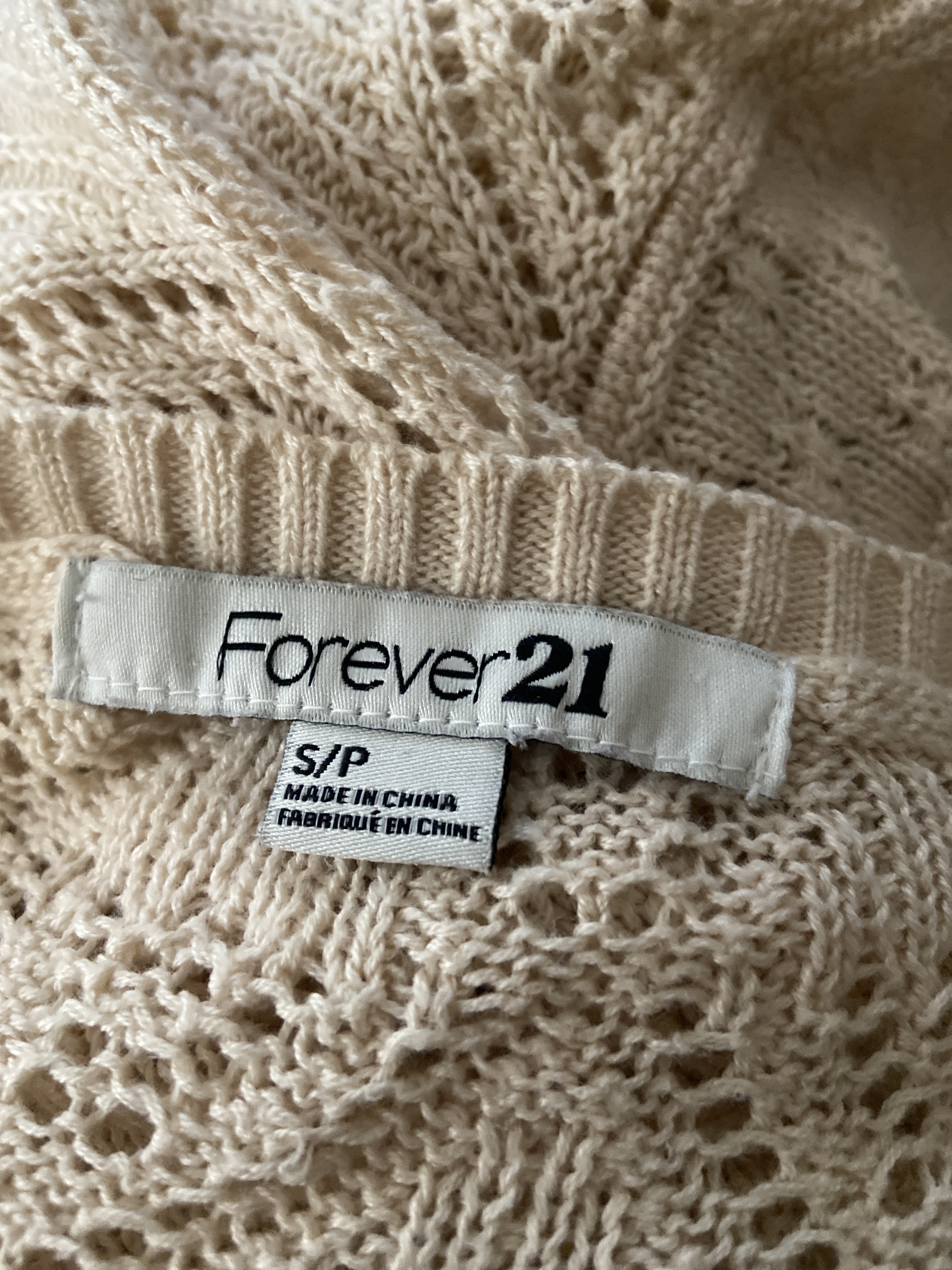Forever 21. Super cute lightweight boho-ish crocheted sweater shirt thing. Great for summer nights or coverup!