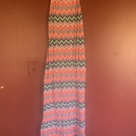 adorable pink/orange fitted stretchy pencil skirt, has a white floral pattern. Knee/midi length. I couldn’t get the color right in the color wheel thing, picture is pretty true to color. Measurements Waist: 12.5 in across Length: 24 in