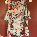 Super cute has flower detailing. With a cute tie belt and lace at the shoulders.