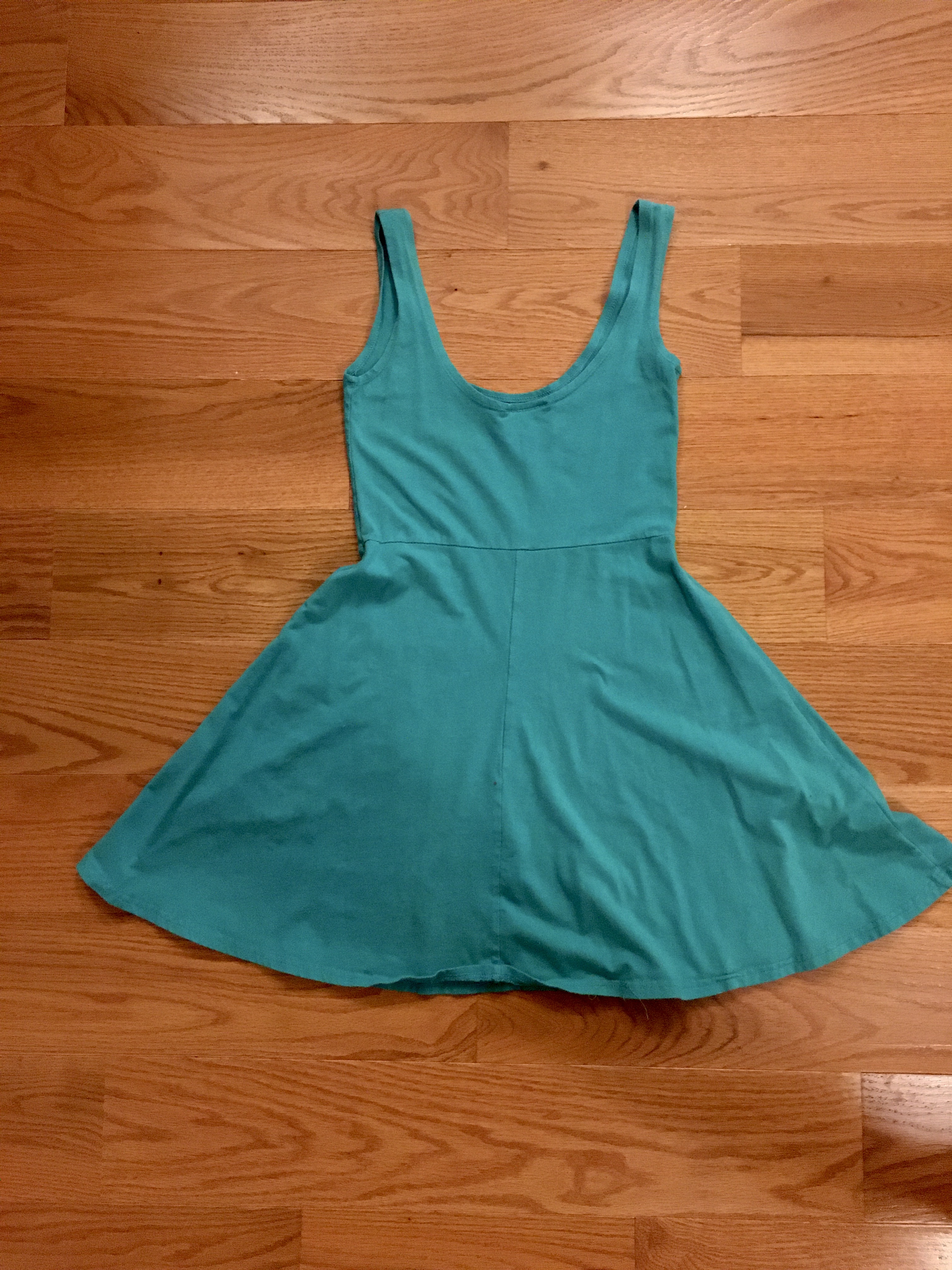 Cute skater skirt dress used as a cute beach cover up. Stretchy material and snug fit. Short but modest length. Scooped top in front and back are flattering and great for getting sun at the beach or pool.