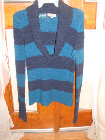 put as good, because it isn't new. purchased at a market, this sweater is warm and comfortable. it is knitted and has two pockets on the front, and is a gorgeous colour. it is an XL, but can be worn by anyone really c: