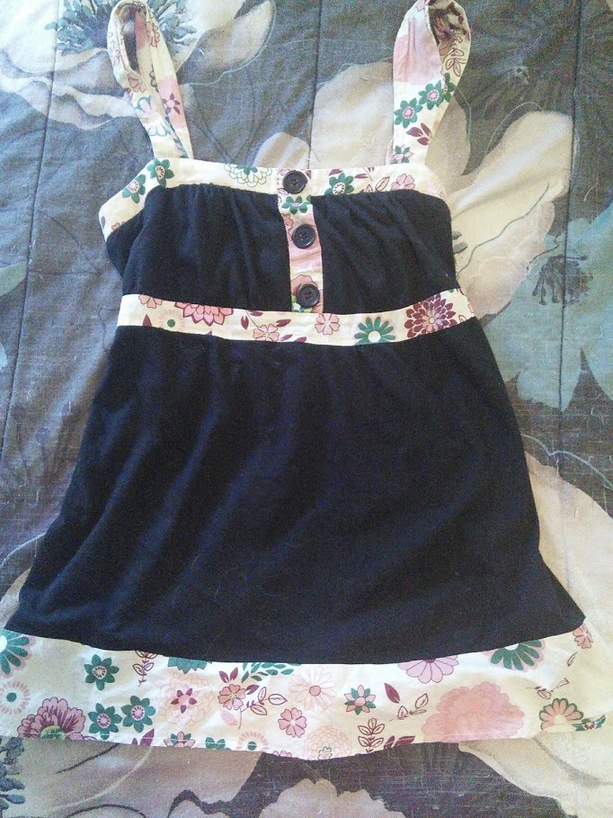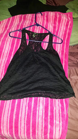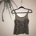 Cute black tank top with floral lining. Would look good with a maxi skirt.