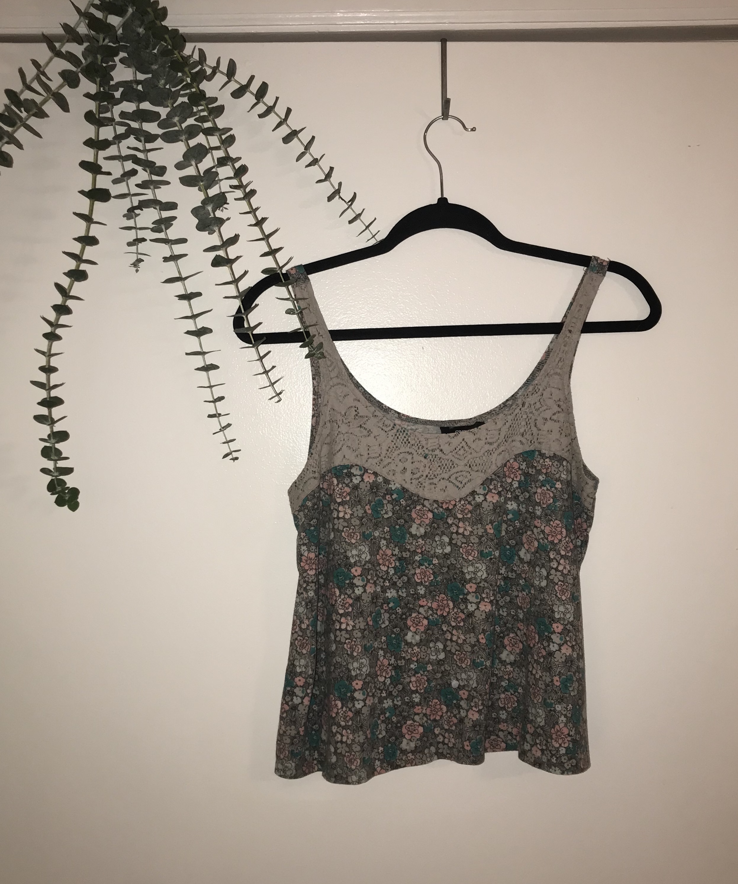 BRAND: O'Neill from pacsun ~~ summery chic flowy tank top purchased from pacsun with floral print and lace detail ~~