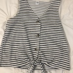 Navy and white striped Old Navy tank. Grey tortoise-shell buttons and a tie front. Summery and nautical.