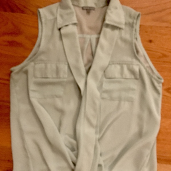 Charlotte Russe sheer tank with draped front, pockets and collar. Light and pretty fit. Easy to dress down or up.
