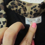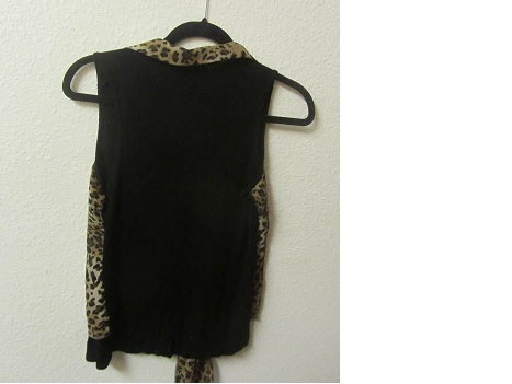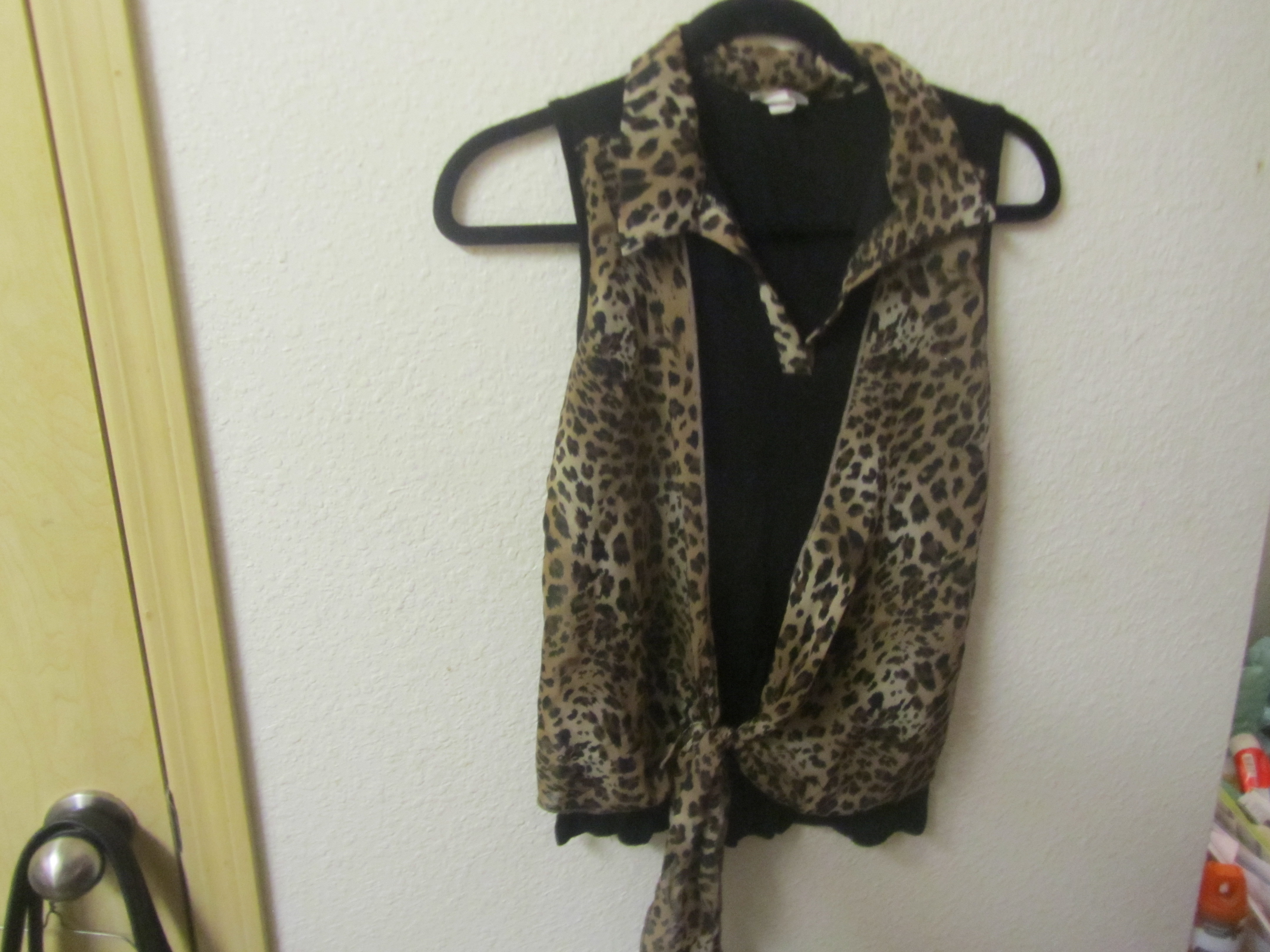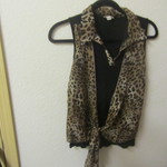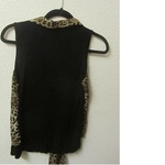 Cute Sleeveless Top size large good condition no holes/stains it's semi-sheer; black with attached leopard print that ties in front