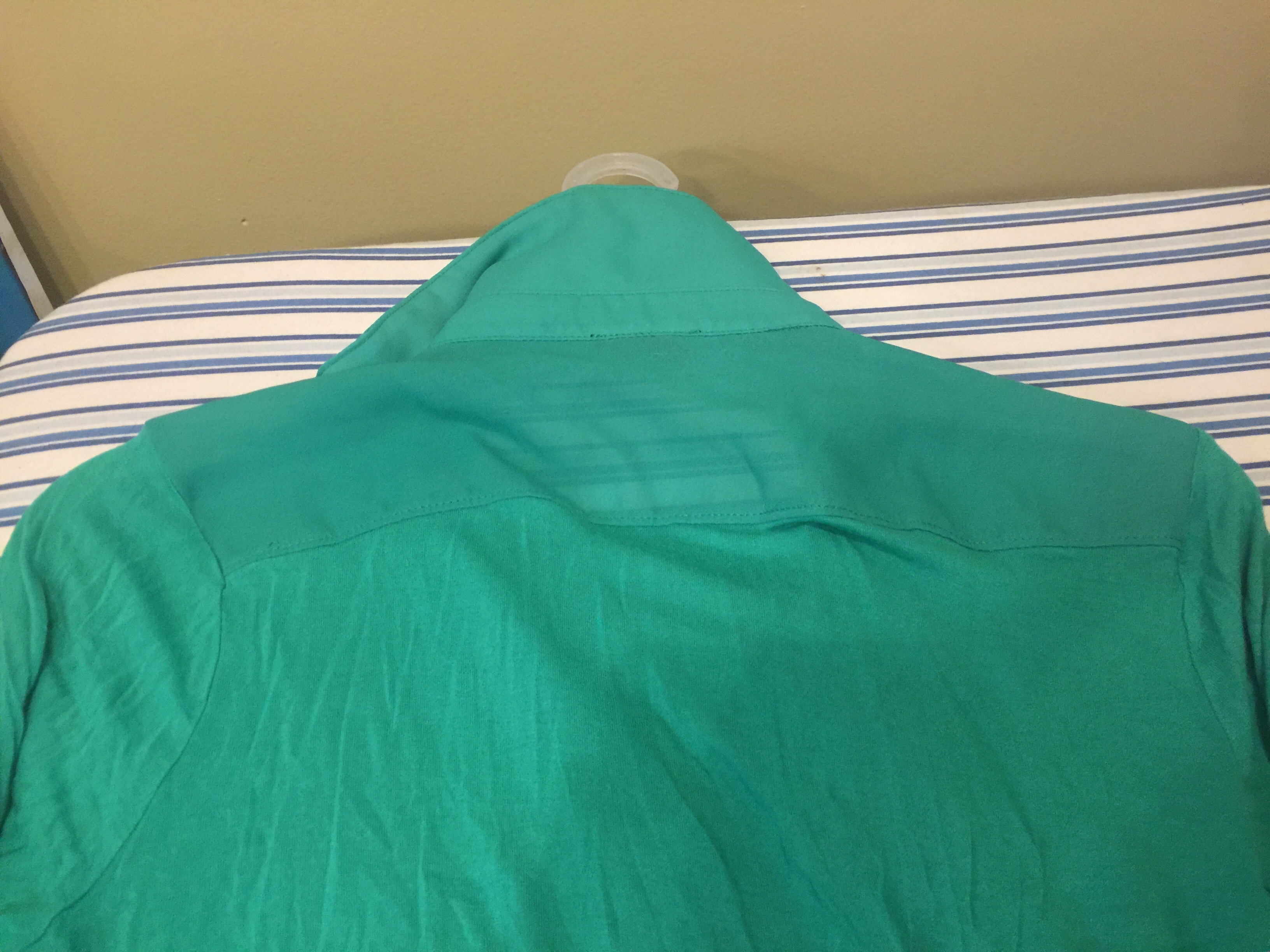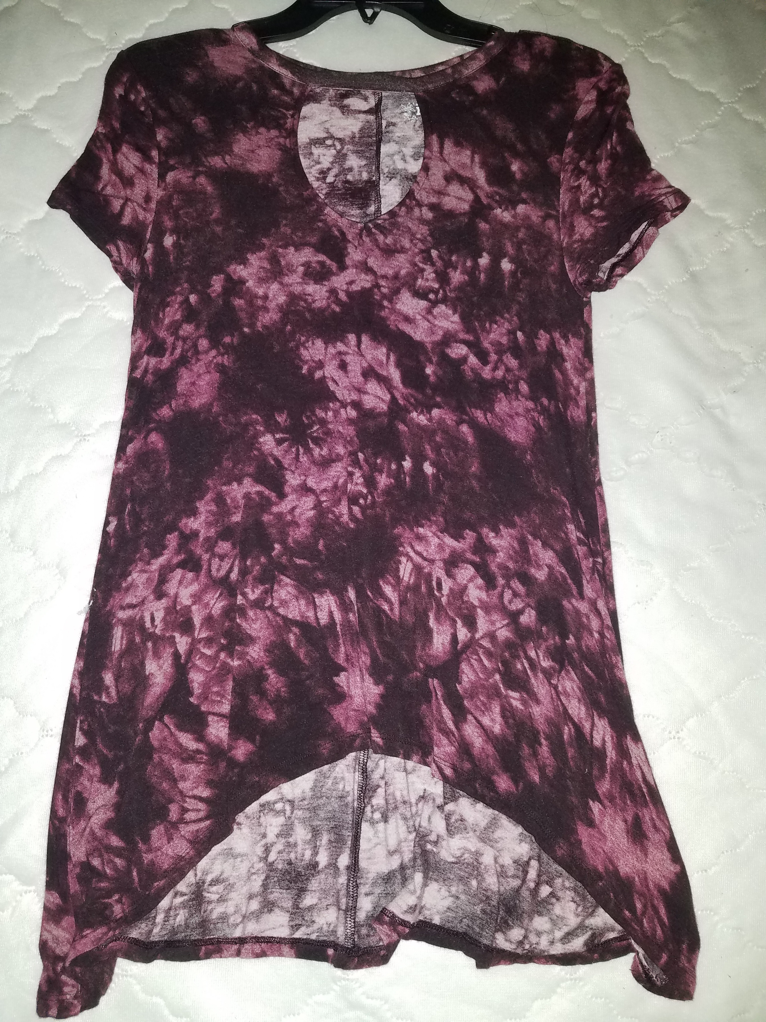 Sheer, cold shoulder with neck tie and detailing. Says M but runs large.