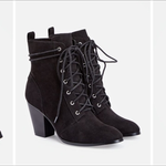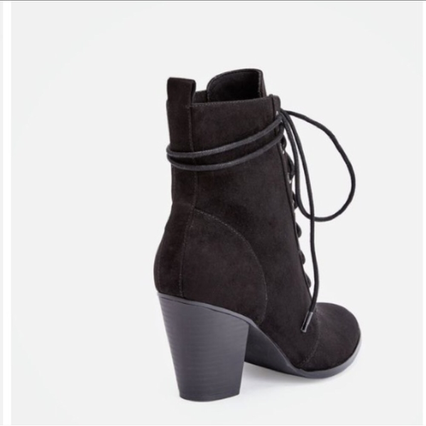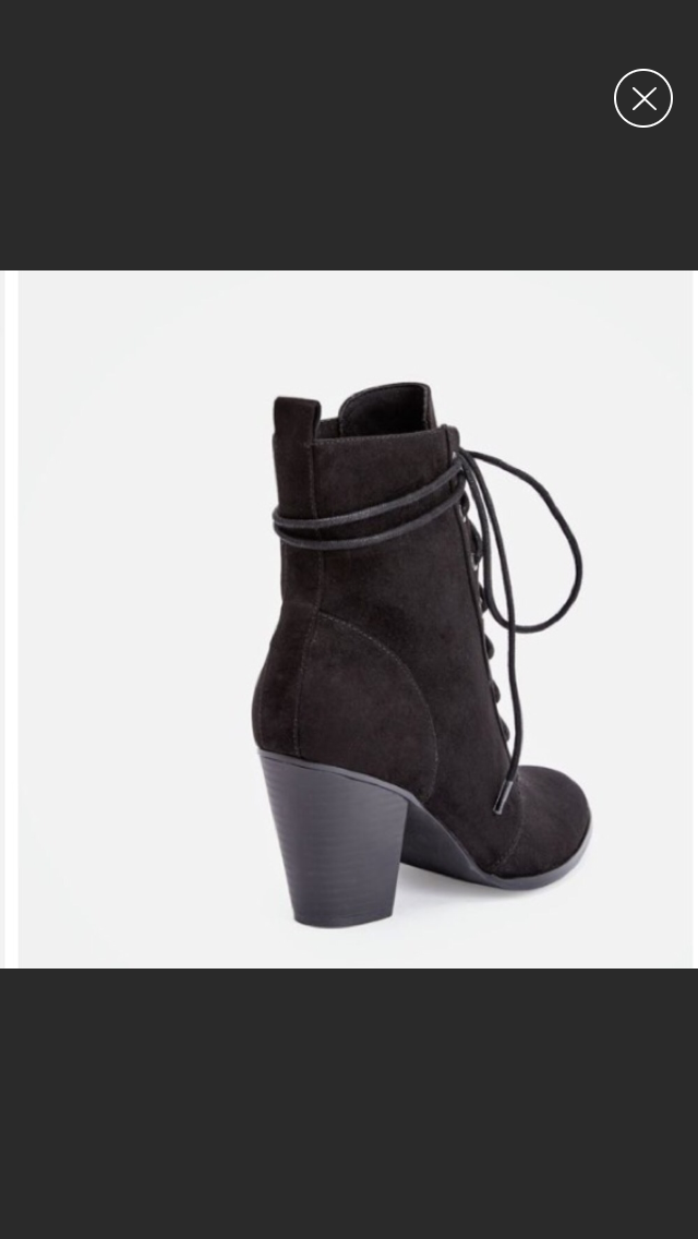 Faux leather black zipper and lace up corset, fits extra small to small depending on bust size. I am about a 34B and it fits snug, and can be adjusted by the ties in the back also. The photos do not do it justice, if you are interested I will send more photos upon request.