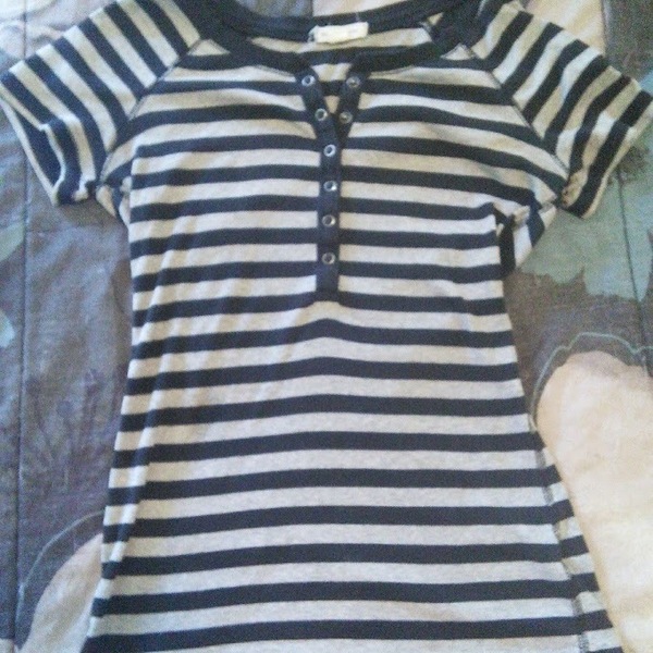 Cropped ribbed tee. Light fabric. Hits right at the belly button for me. Bought at Marshalls and only worn a couple times.