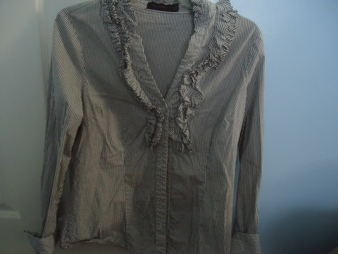 Worn only once. In excellent condition. No signs of stains or wears. Cotton, V Neck ruffles, BUTTON DOWN, size L. NO INTERNATIONAL OR P.O. BOX SHIPPING.