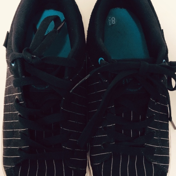 Pinstripe Vans barely worn. Technically size 8.5 but comparing the bottoms to my size 8 flip flops, they are the exact same size-- so they run small. Good condition. Hard to find style