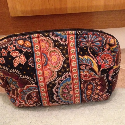 I say good because there is one small tear on the top of one side, I never noticed it till I was thoroughly inspecting it for this posting! Great bag! It has a protective liner so makeup/toothpaste/etc doesn't stain and can be easily wiped out! Great size! I've used it once to hold shampoo packets & lotion for travel.