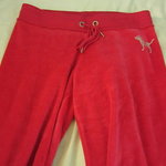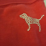 hot pink victoria secret sweats from the brand PINK. says pink in silver on the butt and the dog on the front has rhinestones.