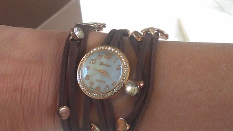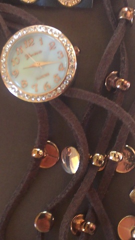 Really cute watch, straps wrap around wrist and snap. I believe the battery is fine in this one, I have never worn it but it looks like it is working fine!