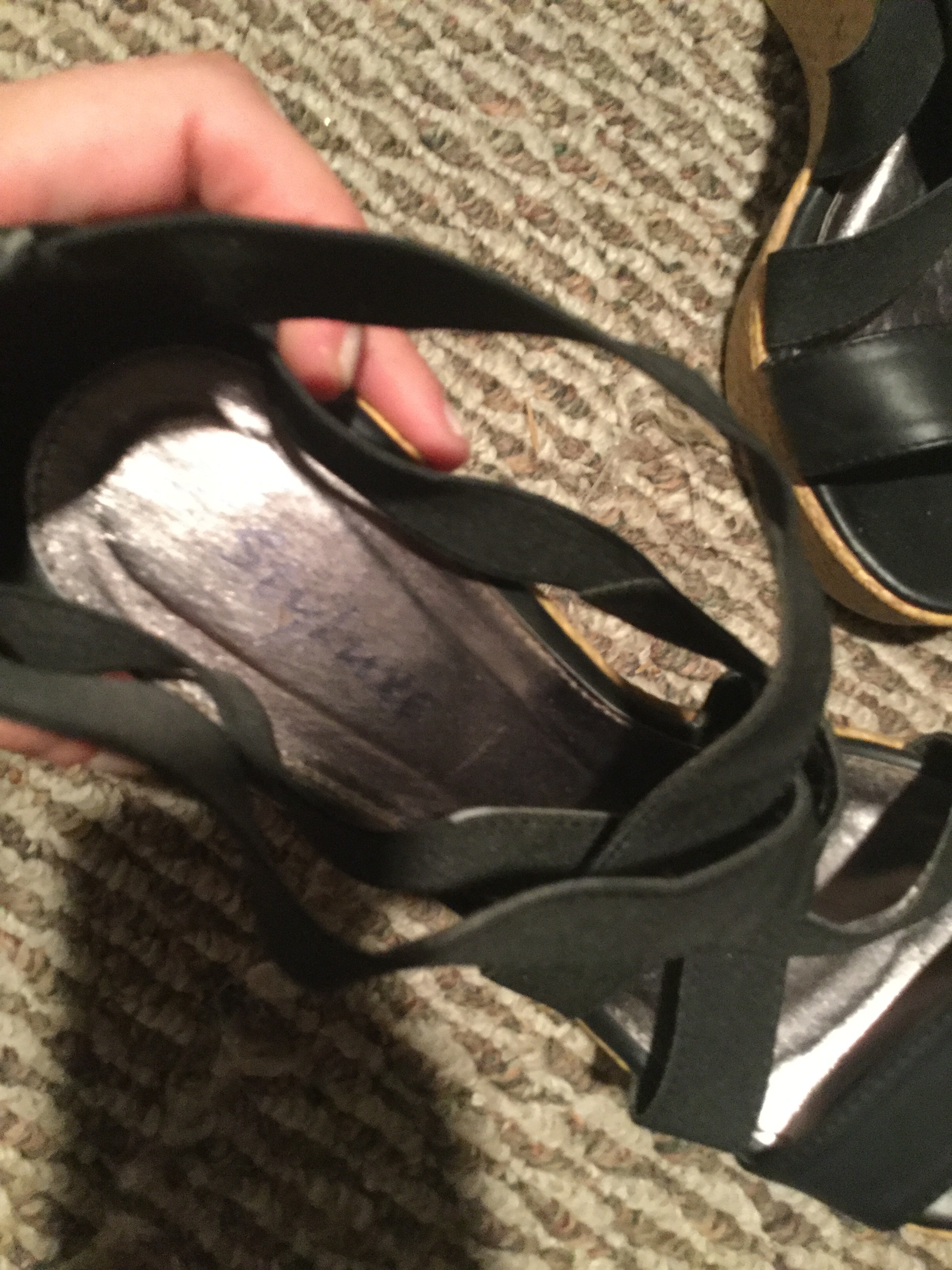 Black Wedge Strappy Sandals 8-8.5