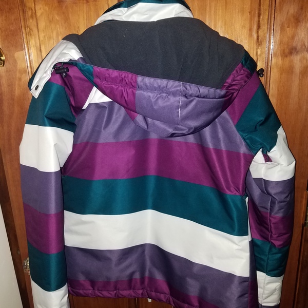 Small size men's blue and white interwoven hoodie. Surfer vibes included. Perfect for cosying up and chilling in. I love the zip down the front that is perfect for temperature control. The hood is a nice length, can be tightened to cover your face like Kenny. It's a 85:15 blend of Acryllic and wool respectively but is so soft and very much nice to touch. Woven like a woolen hoodie but with a fluffy interior lining of the body and a smooth woven nylon sleeves. Also two nicely placed pockets on the front of the hoodie for keeping hands warm. Got it as a joint birthday and christmas present from my mum and step dad when I was 16, I'm 24 now. It's served me well and apart from having to rethread a couple of bits on sleeves and stuff it's help up well against time. It's quite bulky when trying to fit into bags, you will have to wear it when travelling to take it elsewhere on a plane or the like. Doesn't keep wind out very well, combos up with a thin waterproof to provide best of both worlds for outdoors.