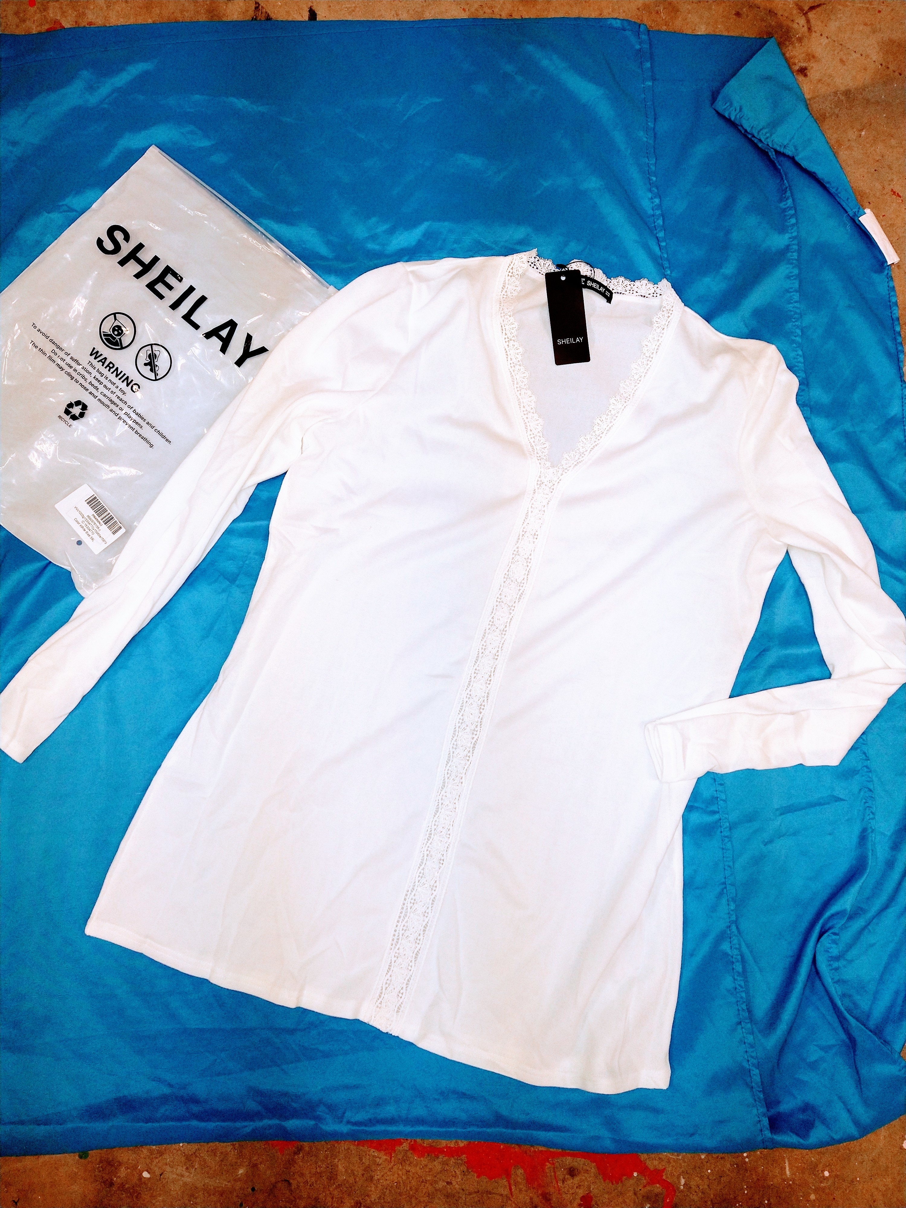 This is new with tags never worn I accidently ordered two of them. the tag says 3X but it fits more like a 2X. Long sleeve and long enough to cover tummy and bum. Think it all cotton. Very cute and very comfortable.