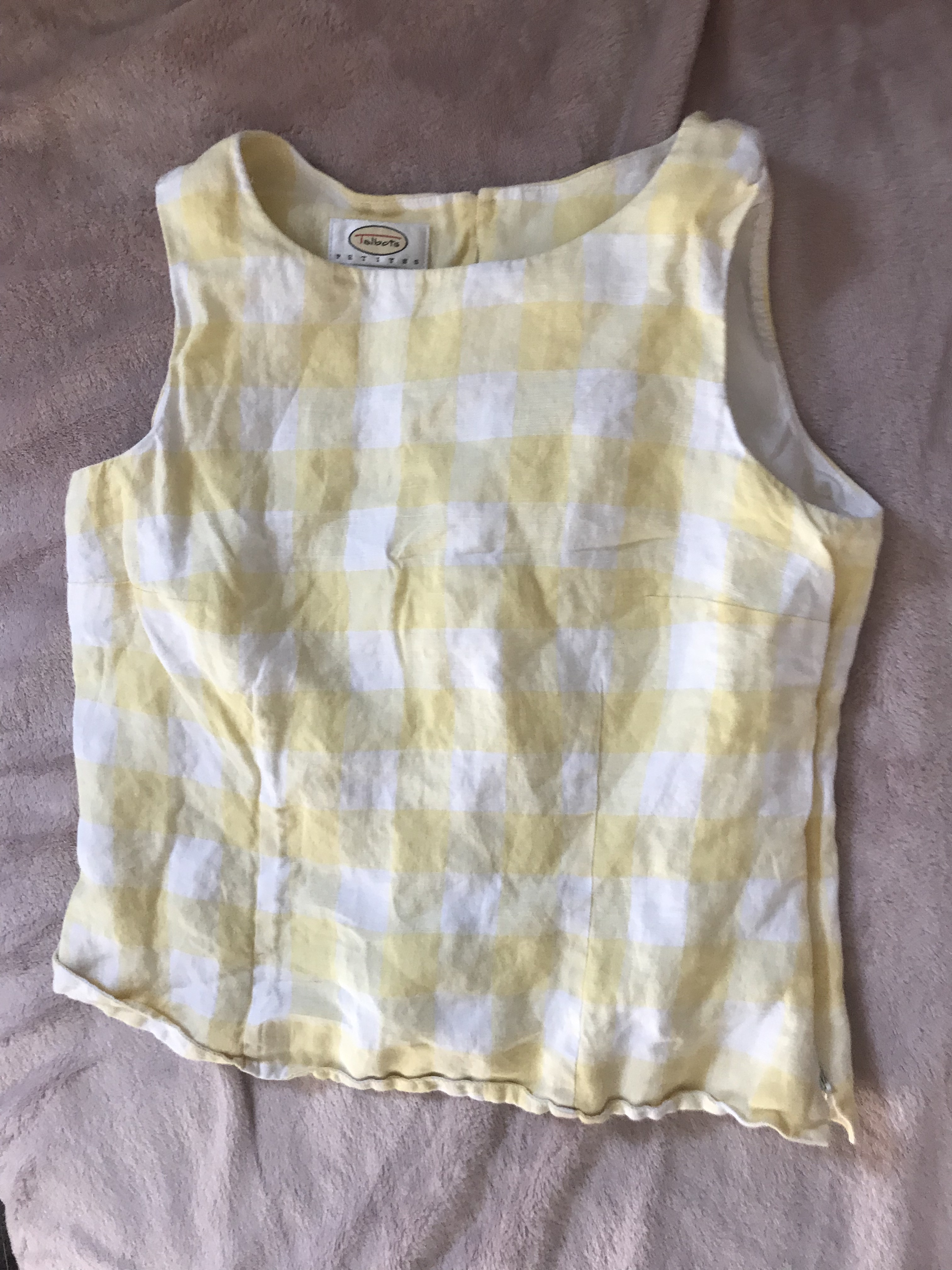 Pastel yellow gingham tank top. A bit cropped, Size 8.