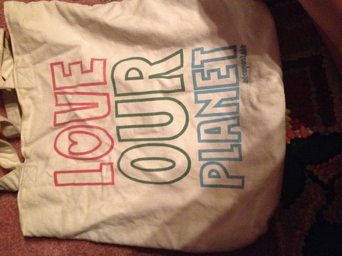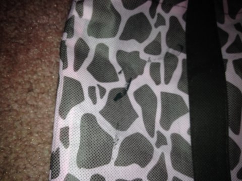Reusable shopping bag. No tips but has a couple small paint spots. Not too noticeable