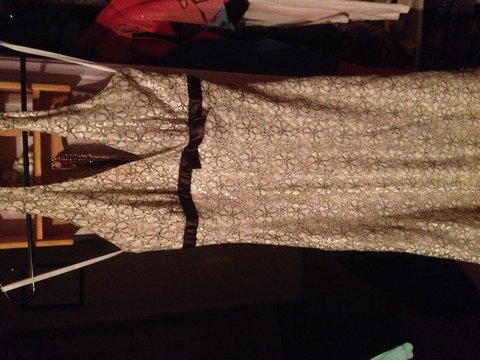 Worn twice. There are a few spots on the inside lining of the dress but it cannot be seen when wearing it
