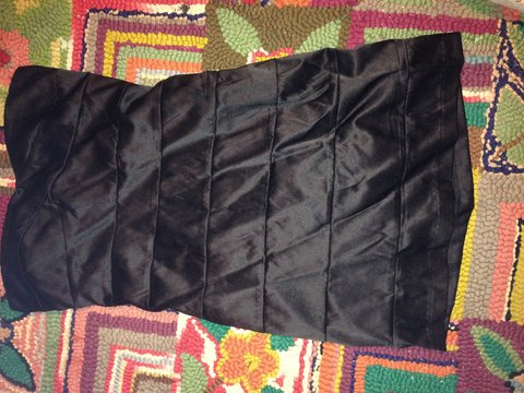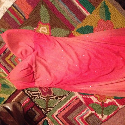 Worn once to a party. Beautiful color. Bottom is a diagonal cut