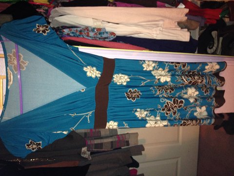 Worn once. Could be short dress or a tunic. Has short sleeves. Belt not included