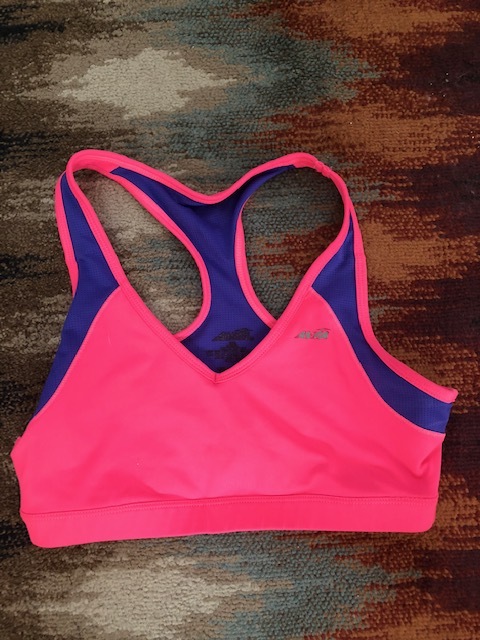 Purple Nike Dri-Fit Sports Bra with two shades of purple. Has adjustable back closure. A little bit of pilling from washing but elastics are in great condition.