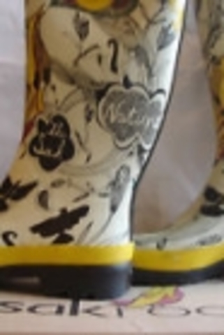 Hello there, used 1x yellow detail rubber rain boots, $30 value